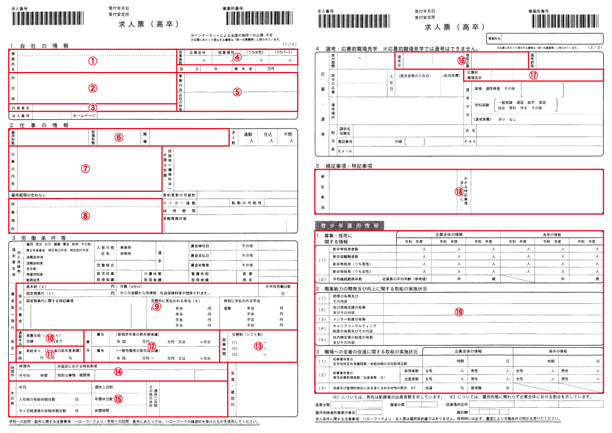 こちらにある写真が高卒向け求人票の実物となります。(表・裏2ページ構成)