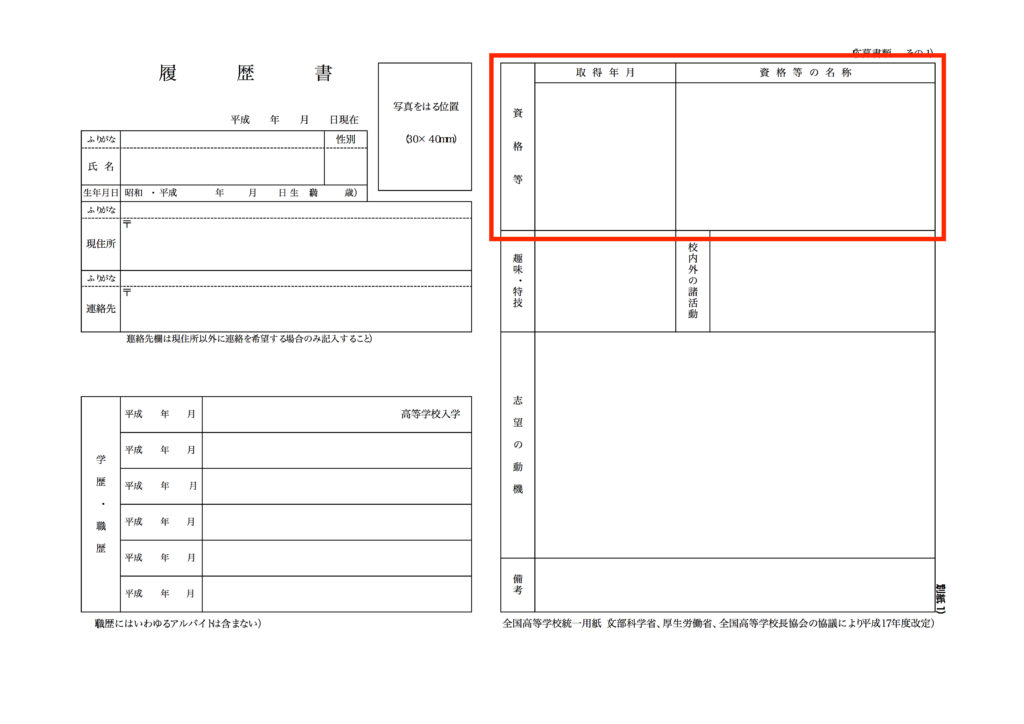 高校生活の中で資格を取得している場合は企業へのアピールポイントとして是非記入するようにしましょう。